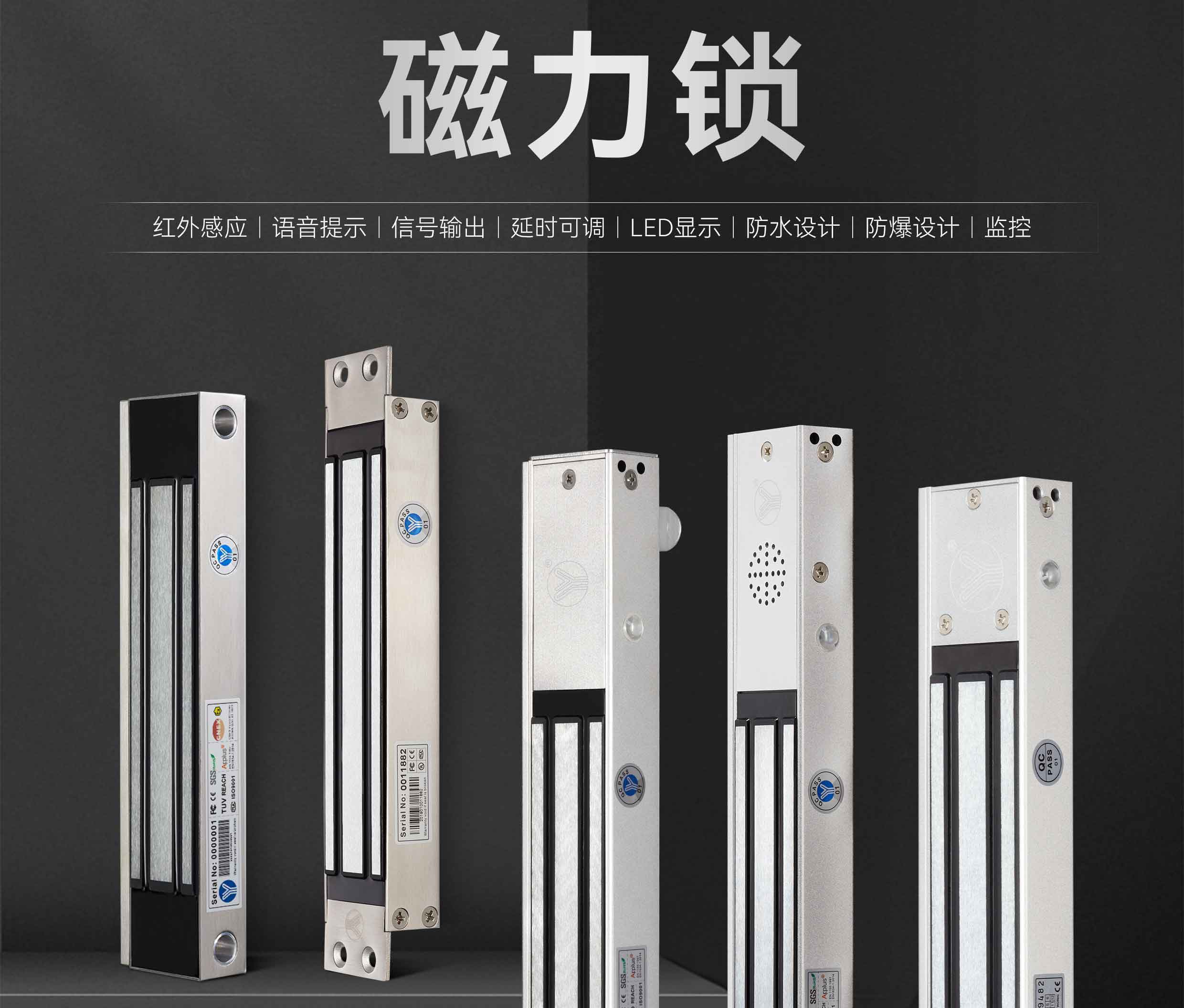 1、按照拉力大小:35kg、40kg、60kg、70kg、180kg、280kg、350kg、500kg、750kg。2、磁力鎖型號帶-S:代表帶鎖信號反饋功能。3、磁力鎖型號帶-DS:代表帶雙信號反饋功能(門信號和鎖信號)。4、磁力鎖型號帶(LED):代表帶LED指示燈及鎖信號反饋功能。5、磁力鎖型號
