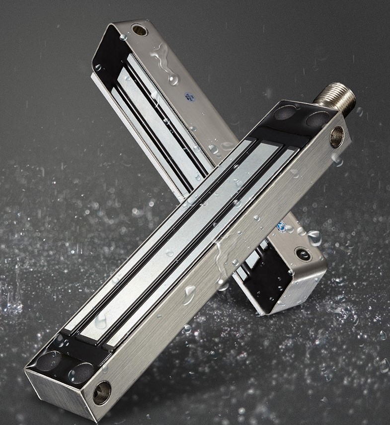 防水單門磁力鎖采用不銹鋼外殼于100%防水處理,所有零件全部密封在鎖芯內,是針對戶外有雨淋考慮的一般金屬門、重型門設計的,電磁鎖固定在門框上方;吸板固定在門扇。本公司產品配套齊全,內開式門或無框玻璃門、窄框門等均有附件配套,特殊(防殘磁)設計,可讓門禁自動化更多