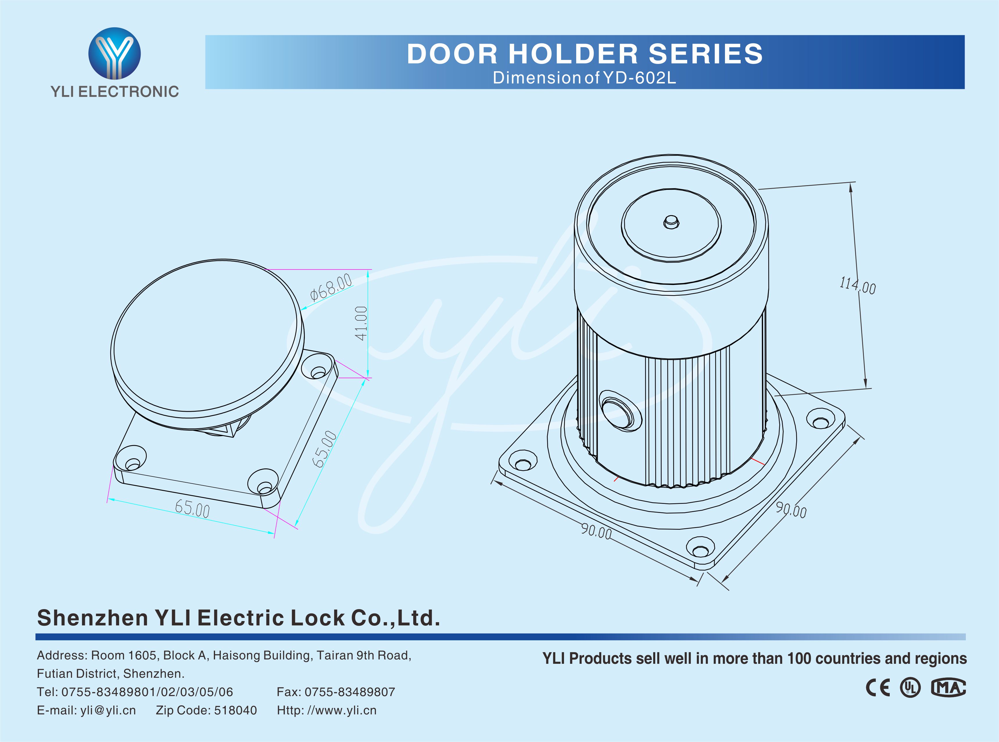YD-602L is a Extended Wall Mount Door Holder. The low power consumption,Highlights it more environment friendly and more durable. Professional anti-residual magnetism design ensures highest security. It will release automatically the fire door when fire alarms.It also contains build-out release button for testing and build-in MOV which reverse current protection.