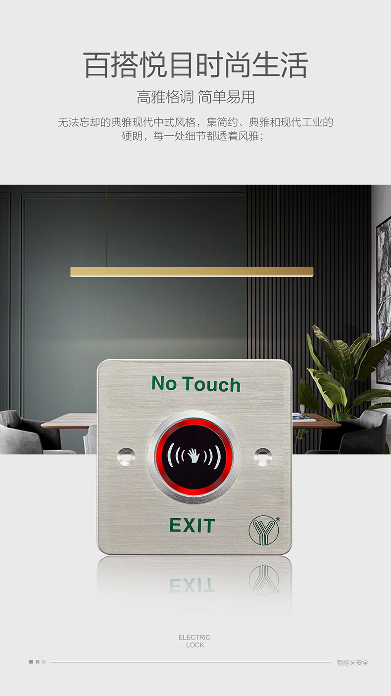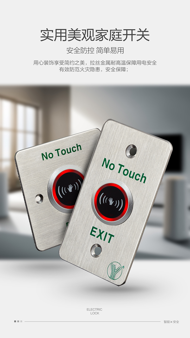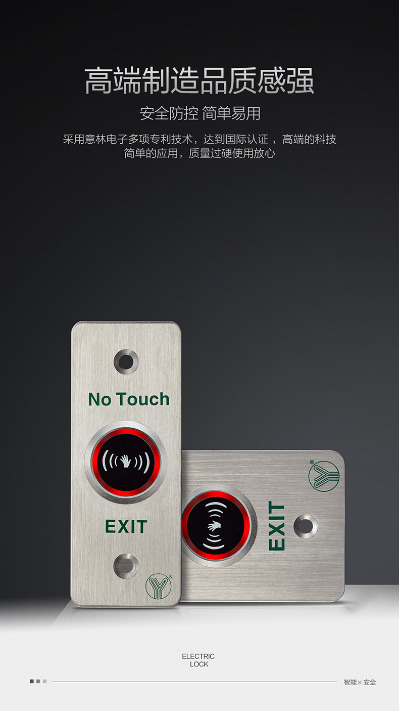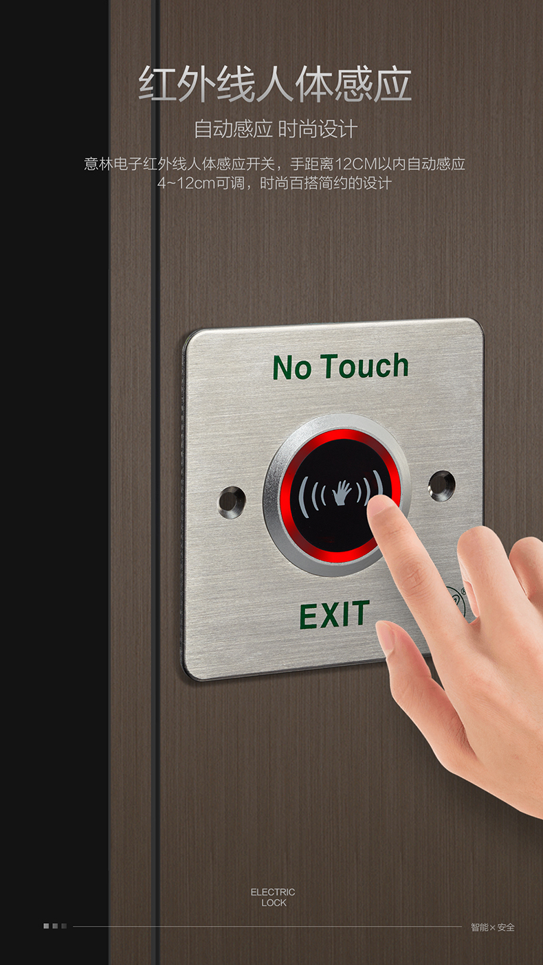 是門禁系統(tǒng)中最常見以及最常被使用到的,出門開關(guān)通常用于一般公家機(jī)關(guān)、銀行、大型、中小型企業(yè)以及百貨公司和住宅,外出開關(guān)系列有紅外線、觸控式、按鈕式、外出推把等。