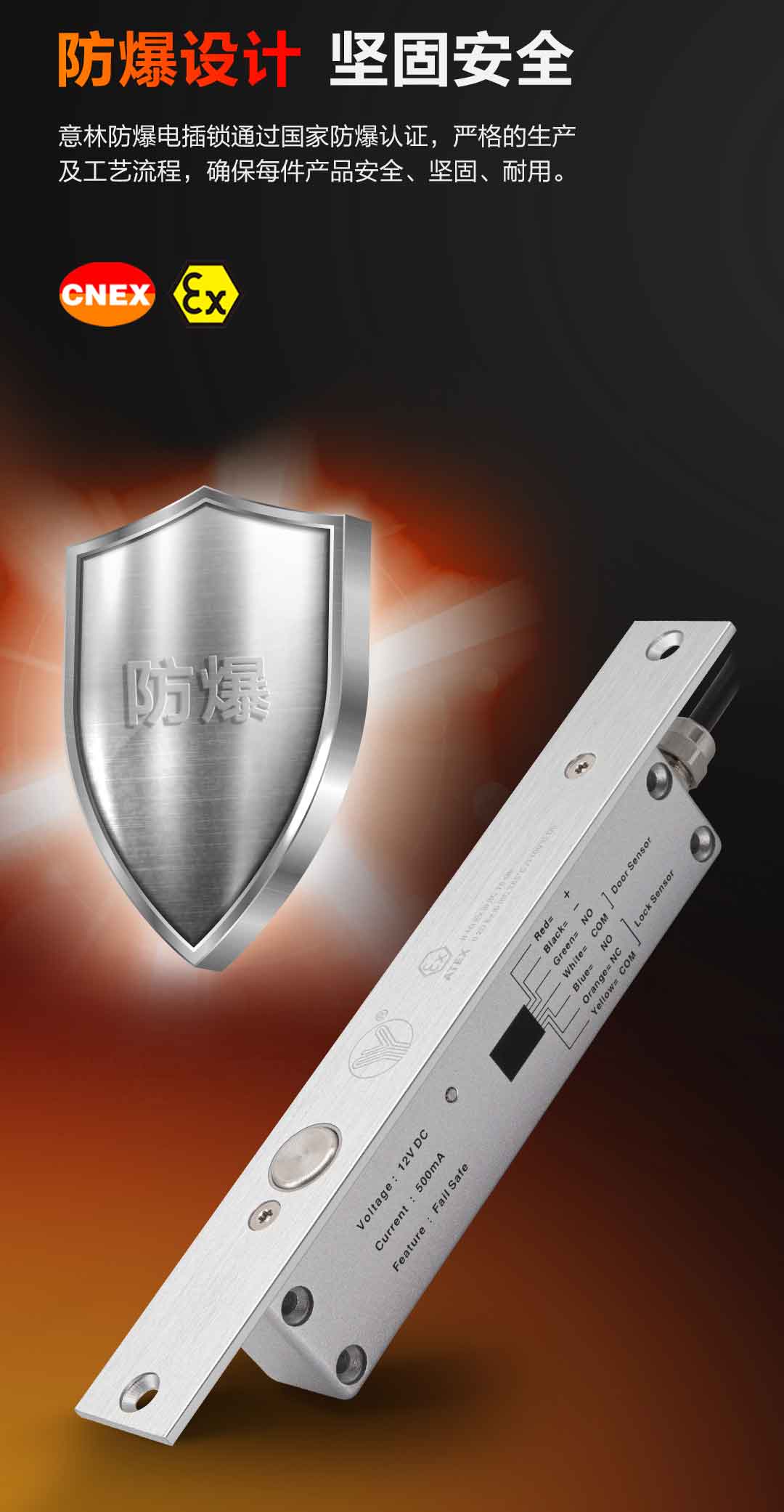 在爆炸性環境中提供電插鎖功能,實現門的電控鎖閉。