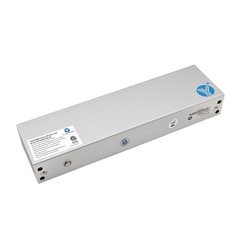 YM-500NT(LED)-UL單門磁力鎖附延時功能,通過美國UL294(門禁系統及組件安全標準)及UL1034(防盜電子鎖機械裝置安全標準)認證,產品在安全性、耐用性和環境適應性等方面,經過了全球最嚴格標準的檢驗,並達到及超過了該標準的要求,為建筑師、顧問工程師、系統集成商和終端用戶提供了權威、客觀的產品性能和質量保證。意林磁力鎖鎖芯特殊加強焊接工藝,抗撞擊力及抗扭力比常規生產工藝強2-3倍,更堅固耐用。表面處理,通過國家實驗室240小時鹽霧測試,達到防氧化、防銹、防腐性能。適用于日常辦公場所或沿海鹽霧,潮濕(如:地鐵,機場,核電站,跨海大橋,港口碼頭,醫療機構,沿海城市建筑)等場景使用。